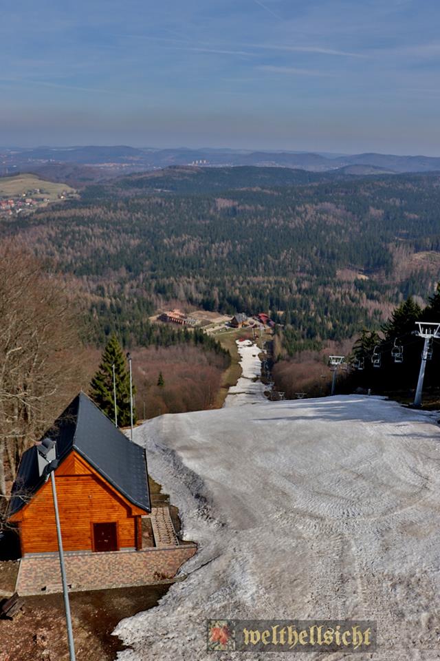 kapryśne Góry Suche po czeskiej stronie: zieleń i śnieg