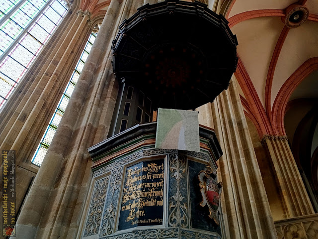 "Katedra Świętych Jana i Donata w Miśni (niem. Dom St. Johannis und St. Donatus zu Meißen) – historyczna katedra założonej w 968 przez cesarza Ottona I diecezji miśnieńskiej. Od 1581 kościół luterański, obecnie jest świątynią kazalną biskupa Ewangelicko-Luterańskiego Kościoła Krajowego Saksonii. Obecny gotycki kościół wzniesiony na miejscu dawnej katedry romańskiej zachował cenny wystrój gotycki (m.in. zespół rzeźb gotyckich, witraże) i renesansowy (ołtarz z malowidłami Cranachów) [...]"
