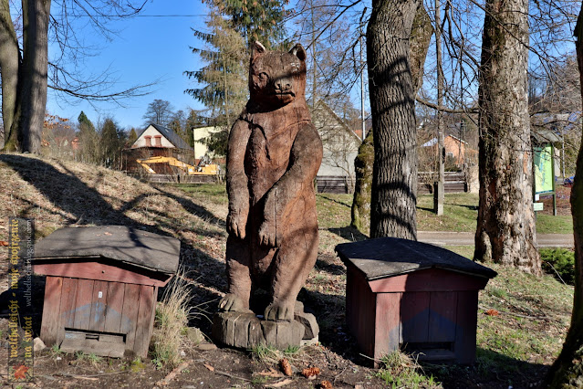 Jak przystało na poważny symbol, niedźwiedź doczekał się wielu rozmaitych przedstawień w formie reliefów, rzeźb czy też innych dekoracji. Wybrałem kilka przykładów m.in. z Wrocławia, Legnicy, Polanicy-Zdroju, Kamiennej Góry, Mirska.
